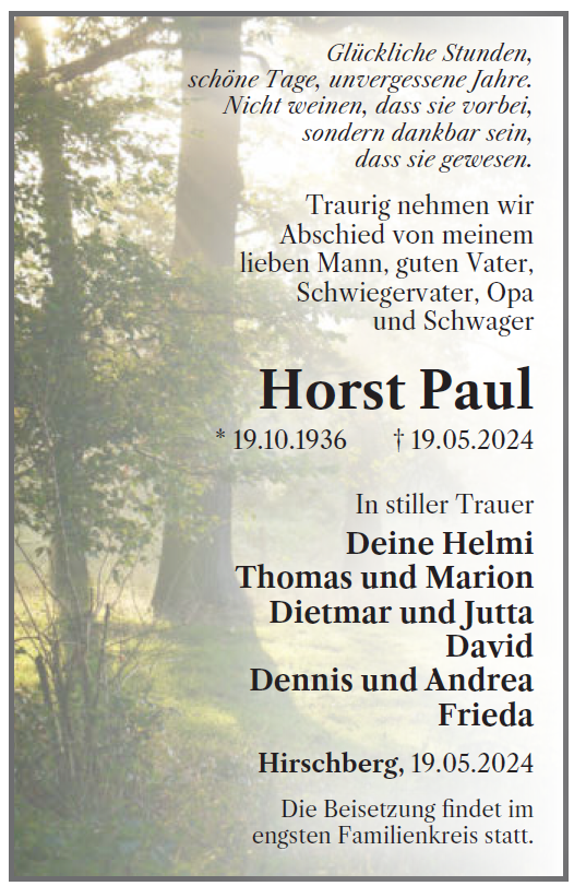 Horst Paulgestorben am 19. Mai 2024